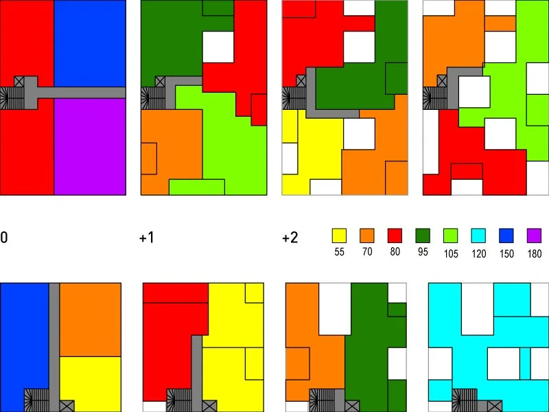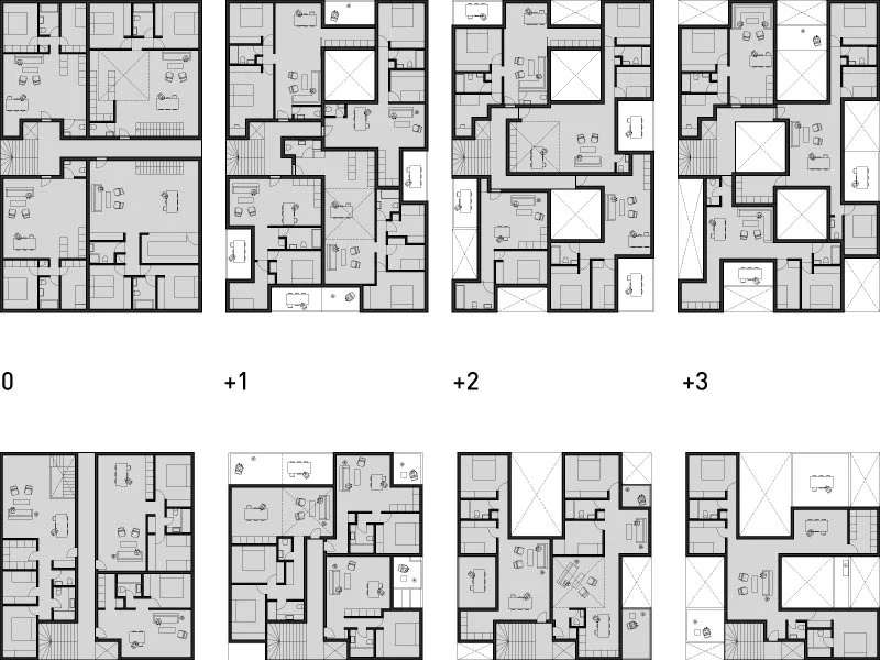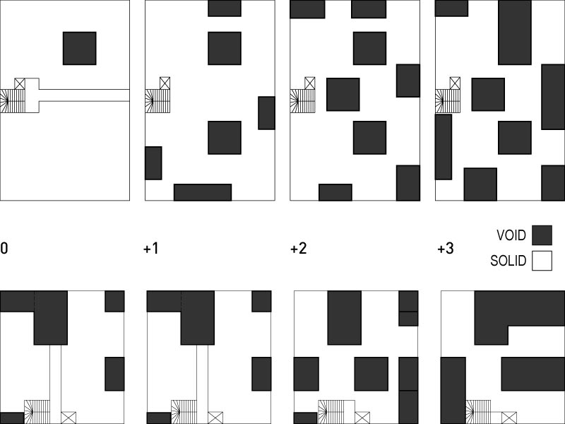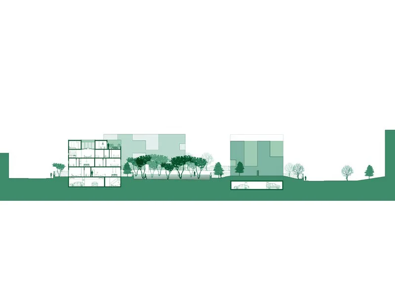 This housing project proposes a new paradigm for both the making of a polykatoikia (the archetypal apartment building of Athens) as well as the organization and public spaces of an urban block. The strategy is to provide a diversity of spaces and apartment types while transforming the street level by removing the car into a unified basement and creating private gardens and safe communal open spaces.