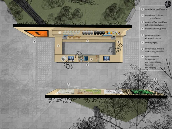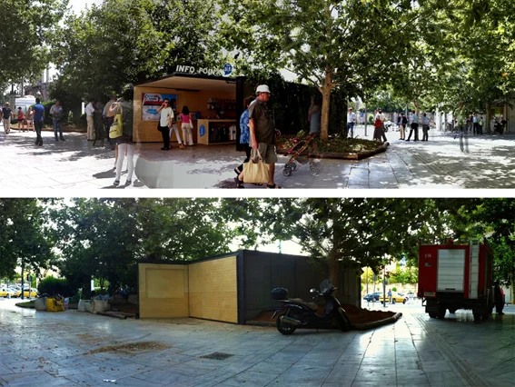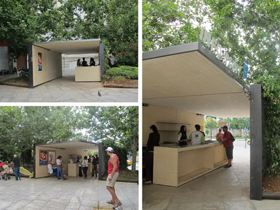 Athens Info Point is a kiosk commissioned by the Municipality of Athens with the purpose of serving as an information hub for visitors to the city. The project is situated in Areopagitou street, the center of the touristic activity of Athens due to its proximity to the archaeological site of Acropolis and the new Acropolis Museum. The project was designed and implemented within a period of four weeks during the summer of 2011.