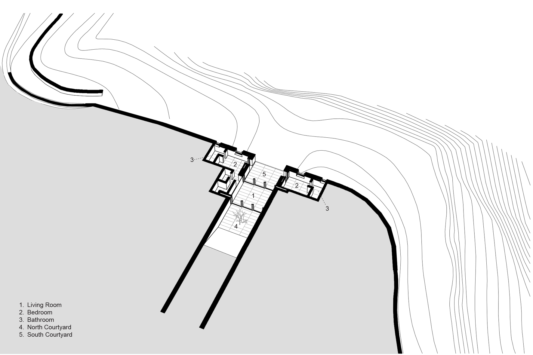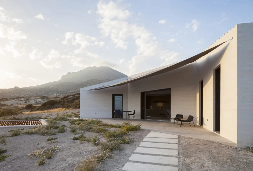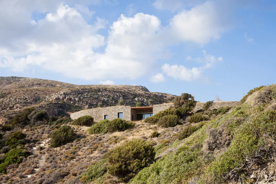 Voronoi’s Corrals is a project located in a 60,000 m2 plot in an isolated natural setting in the island of Milos, Greece. The overall design strategy was to segregate the rural areas of the landscape from the wild ones with clearly defined borders that form four distinct corrals. Each corral takes its references from its microenvironment and adopts sustainable strategies to amplify responsibly the experiential qualities of both the house and the landscape.